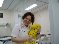 Wednesday at 9 am started my 2nd chemo session. Blood counts were good so chemo started on time.  Missionary wife, Heidi Gardner, drove us to the hospital.  She and Gwen were quite entertaining.  They decided that my chemo buddy, Spot, should be photographed with all the people that helped us that day!